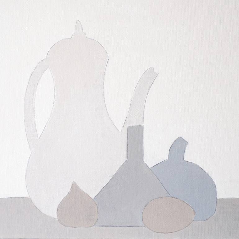 Minimalist still life, part of my latest series of oil paintings on cardboard canvases. A still life painted following my minimalist research on simple siluettes and tones of whites, beiges and greys.