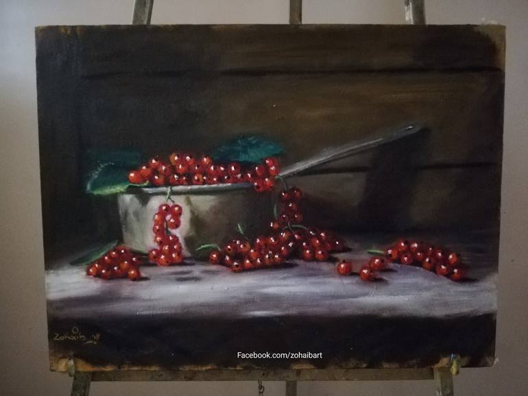Still life Paintings (Cherries),bright and vibrant colors gives viewers a sense of joy and peace