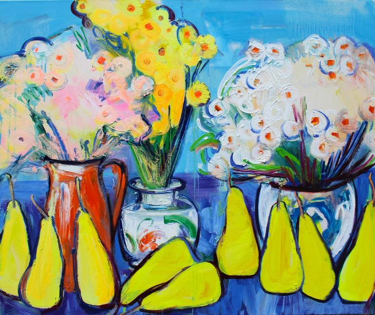 Still life autumn tenderness with yellow pears. This picture will decorate your interior and replenish your collection, as well as will be a wonderful gift.