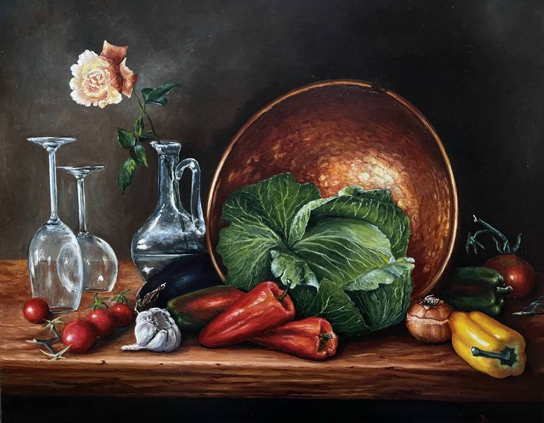 The composition of a classic still life has its own history and rules. But sometimes you want to fool around, at least turning the glasses over. *Size: 50x60 cm (19 7/10 × 23 3/5 in) *Painting are signed by Author - Oleg Baulin *Type: Original Hand Made Oil Painting on Canvas. The artwork is str...