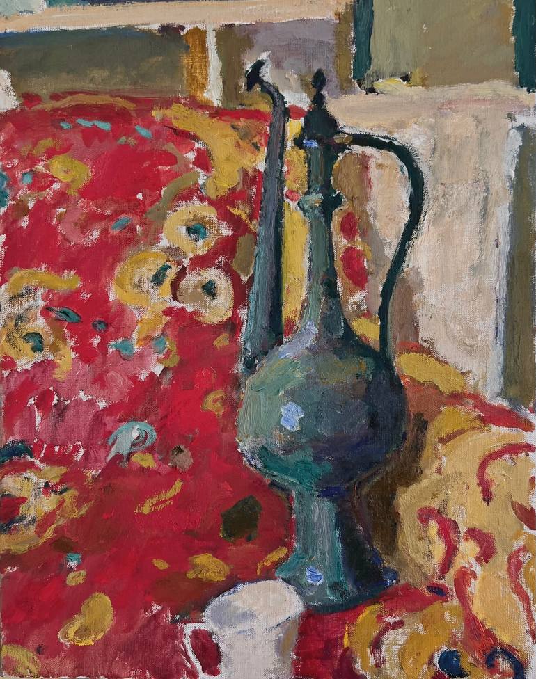 Still life with oriental carpet written in summer from nature