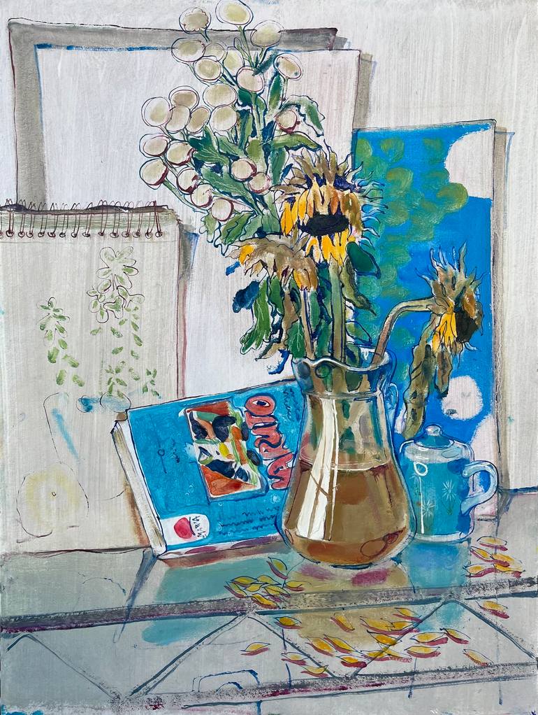 I got this bouquet for my birthday. I watched the flowers live out their lives. Of course, I've never had to think about the similarity of the lives of all living beings, but I decided to paint this artwork not because of such thoughts, but from observing a simple and beautiful moment in life.