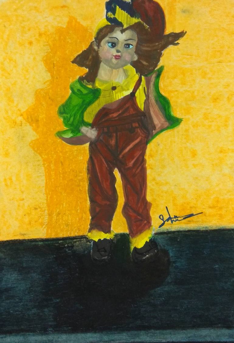 It's a painting of still life of a doll on a table