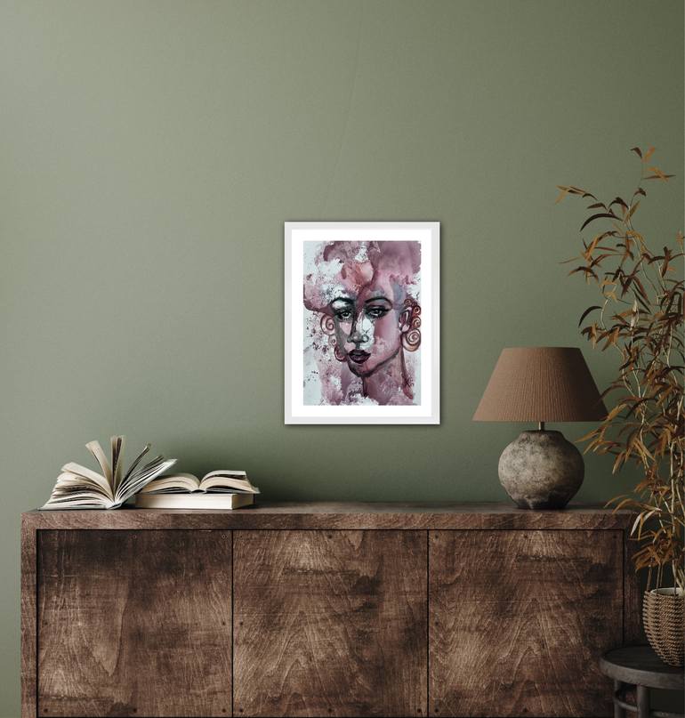 "Still Waiting for Happiness" captures a moment of quiet longing and introspection. The woman’s gaze is profound, reflecting hope tinged with melancholy. Delicate swirls and soft tones of pink and burgundy encircle her, symbolizing emotions in flux. The intricate blending of light and shadow reveals...
