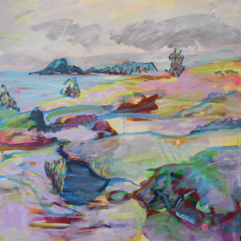 Tranquility, chaos and loneliness are present in my work on large size paper. These are the landscapes that go back to my youth, the naked dunes of Appelscha, the woods of Friesland in the North of the Netherlands. Accentuated lines in combination with large, sometimes sober areas of colour give a dynamic and depth to my work. The layering of pigment, use of alkyd paints and neon colours are important aspects of it. Composition and perspective provide a balance between chaos and tranquility. Sometimes I make replicate drawings and paintings of different format from specific compositions. I work with mixed techniques on paper or with oil paints on canvas or cardboard. The touch is recognizably a personal one. I use impulse and suggestion in my paintings and drawings, and want these to attract though their spontaneity and unique colouring. Thus landscapes are created that are sometimes inviting and exude warmth but at other times are without pity, sad and isolated. Other sources of inspiration are provided by photos from the newspapers, time-frames of suffering in the world, sailing voyages or the autumn in my garden. I attempt to reach abstraction and suggestive simplicity in small and large format.
