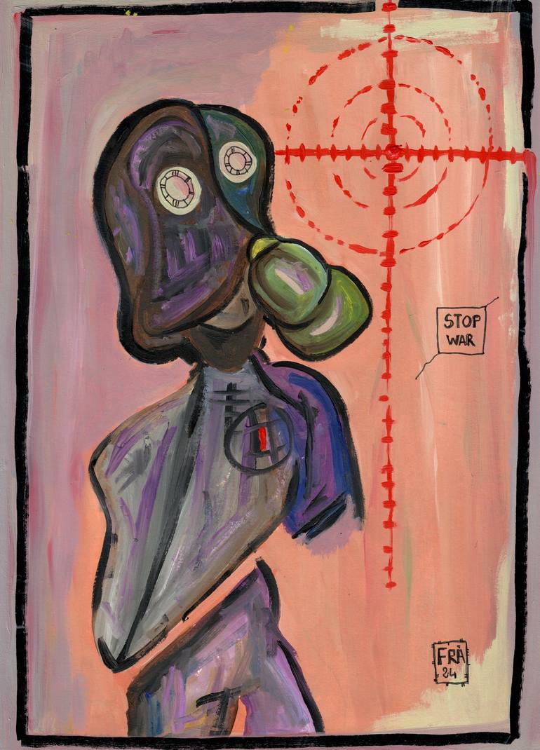 Stop the wars. Thousands of people die every day, we are all under the radar. Let's stay human. Oil on paper Fabriano.
