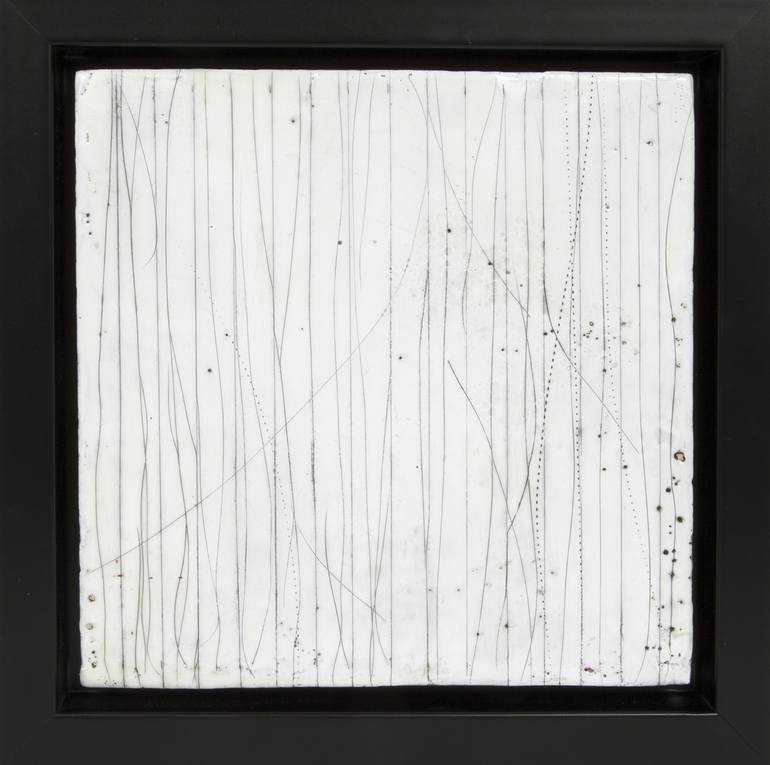 This original encaustic painting titled "Strait Lines” has been framed and is ready to hang.