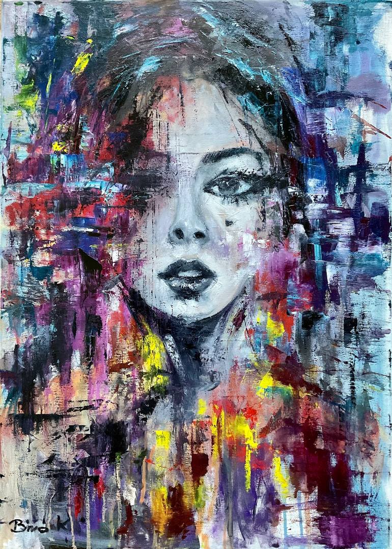 An expressive portrait of a beautiful female face that captures eternal moments of emotion and beauty. A delicate balance of female strength and empathy meets in this painting that will captivate all viewers. Buy this piece of art to add a wonderful artistic touch to your home or office! #oil#Female...