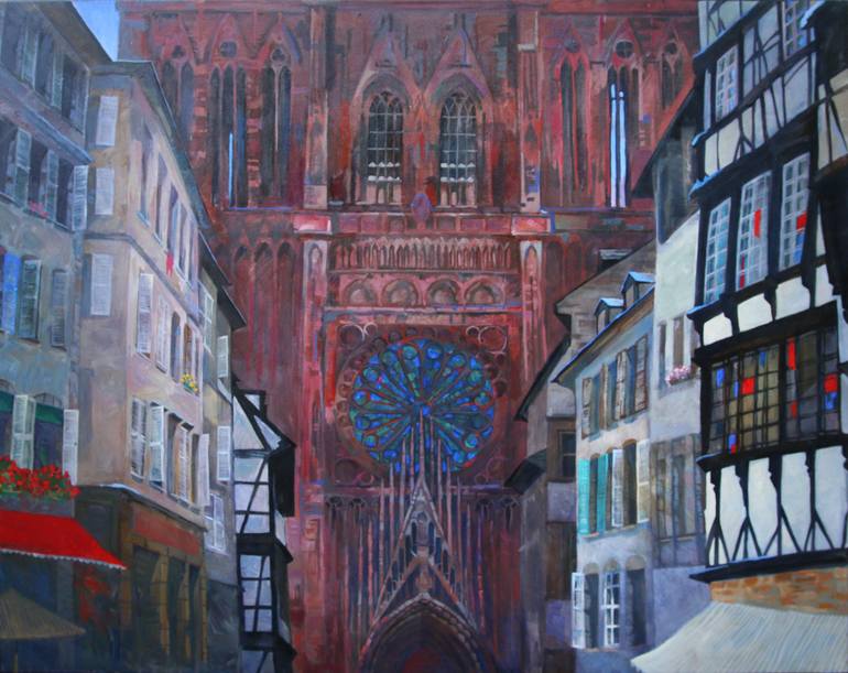 Oil on Canvas. Impressionism. Strasbourg street written in oil in a traditional manner