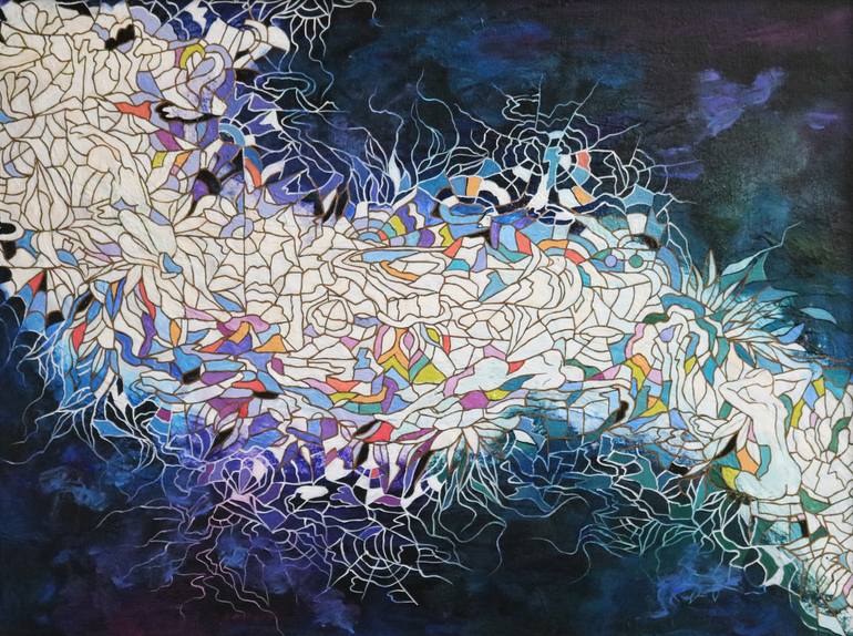 Peggy Lee was born in Seoul, Korea and has resided in the United States for a long period of time. Having been educated with a bachelors of fine arts from Korea, she studied art in the United States as well. As a full-time artist and art educator, her vision is multifaceted and cultural at the same time. Her level of creativity is outstanding with a strong work ethic. She often states that painting is very much habitual and a daily pattern. She makes art a part of her schedule but in actuality, it is her life. Her current work reflects the fact that society is slowly dissipating into a world of isolation. Our constant obsession with networking online is deterring us from the true values or morality we claim to hold true. Peggy's works can be seen as a huge cobweb in it's entirety, which ironically mirrors how technology works. It represents the need and re-evaluation for tradition, unity, and a love for humanity. Her art is a direct representation of creativity, depth, and complexity. Ultimately, her work continues to be inspired by the mutuality in people all over the world.