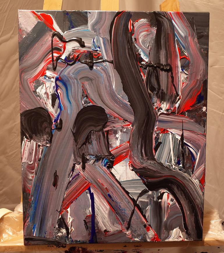 "Streamer" is one of my walking series in the dark, this series of paintings are created when I am confused. At the time of my creation, I was very struggling and confused. I didn't know how to change my way forward, and I couldn't go any further. So I expressed my inner feelings through this series...