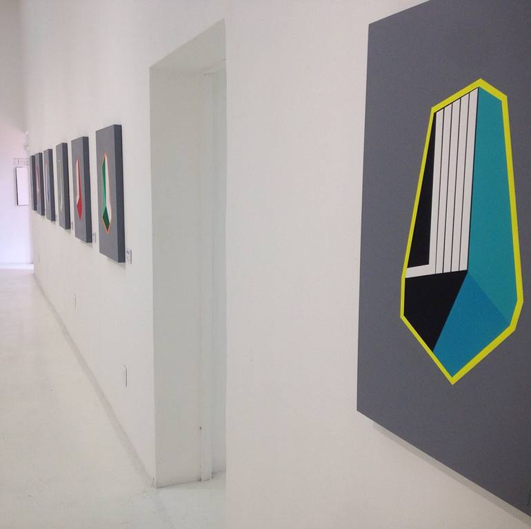 This is a more simple but a strong version from the "string re attached" polygons. The use of black spray paint enhance the volume of polygon and the yellow fluorescent outline balances the aqua/ green color palette I used for the piece. This artwork belongs to the series nodes, which it characteriz...