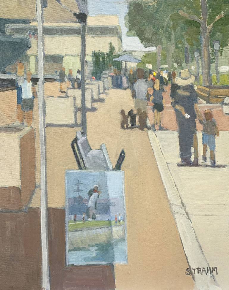 A landscape is not always pastural. Cityscapes are alive with people. In San Diego the pace can be slow and easy and this is how I enjoy it. This oil painting invites the viewer to slow down, take the dog for a walk, stroll with the family along the embarcadero. I travel around looking for a place's...