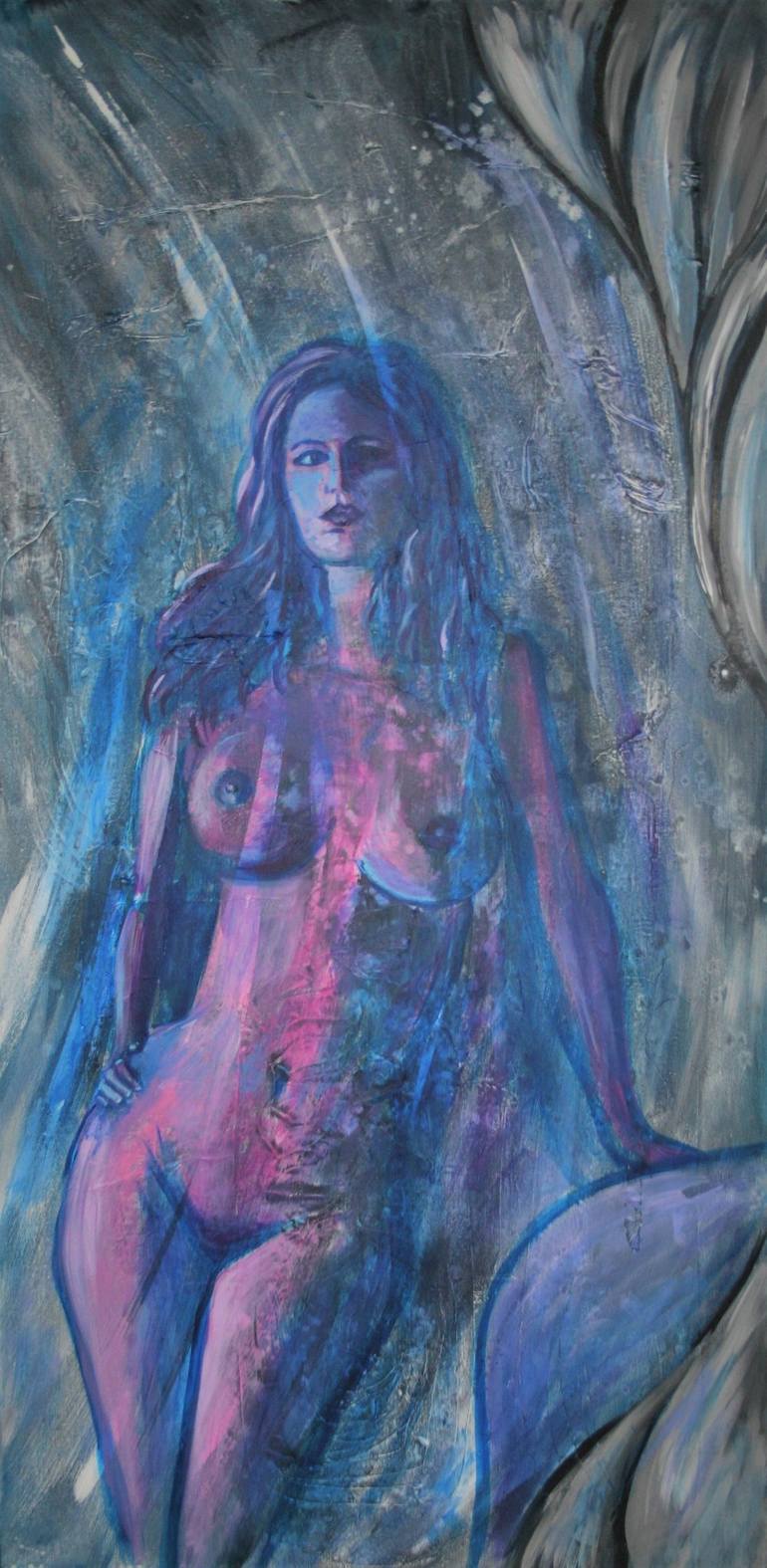Strong point; acrylic, canvas; 2023; 48 x 24 in; 121 x 61 cm Experience the allure of the human form with this captivating nude acrylic painting. Bold yet graceful, it captures the essence of the female figure in a modern, stylized way that is both powerful and elegant. The harmonious color scheme ...