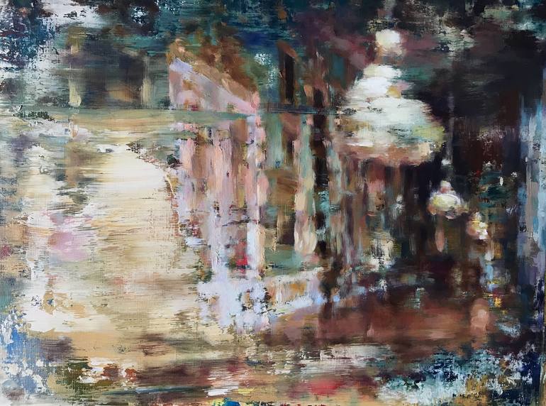 My art is a tribute to the places that hold up a moment of contemplation. Architecture is the inspiration of my work. The building or the interior is the vehicle with which I can most positively relate. I'm preoccupied, fascinated, and curious about the solitariness and mysteriousness of the places. My work is evolved in various stages with a mix of abstraction and landscape representation. Blurring edges and outlines as if images were speeding by with the flicker of film, or glimpsed through crashes of abstraction, colour obscuring or clearing... The architectural landscape have been selectively integrated into the abstract background by addition and subtraction, creation and destruction. The painting process often generates unexpected results, and creates an arena for me in which to act.