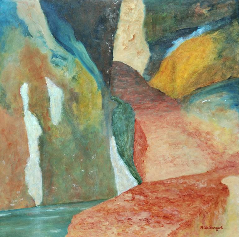 A semi-abstract painting of a section of Clearwell Caves in Gloucestershire, England, a disused iron mine, now a museum dedicated to mining. I hope that it conjures up a feeling of wonderment whilst retaining an element of reality, bearing in mind that men once worked, and sometimes died when workin...