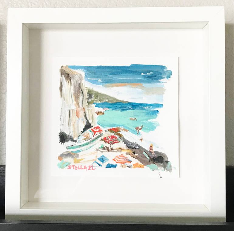 Mini collection of ocean views around the world. Original acrylic on textured paper Paper size is approximately 6" x 6" Framed in white 10" x 10" shadow box frame Archival backing board Display material: (non-glass) polystyrene Due to monitor/lighting differences, color may vary slightly. *Note: A...