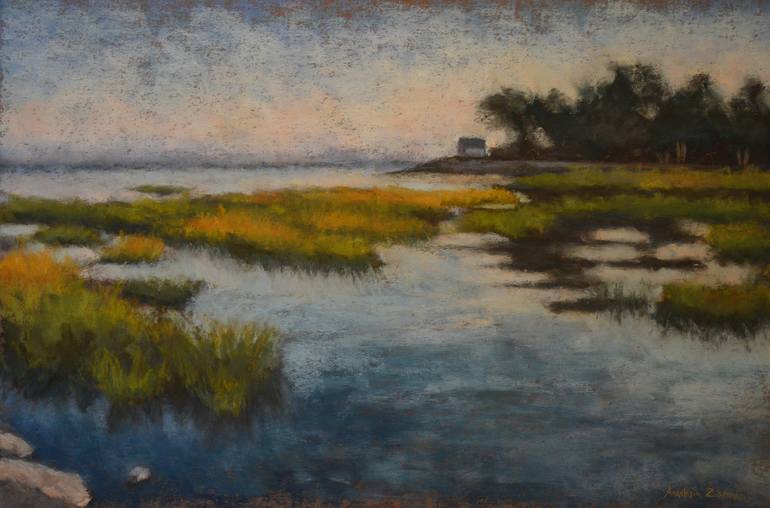 Anastasia Zinkerman is a pastel artist and nature photographer whose landscapes and still lifes capture the quiet, inspirational beauty of her favorite places: coastal Connecticut, where she lives, as well as the woods and mountains of Vermont and New Hampshire, where she also spends a great deal of time. She achieves a tranquil mood by using textured paper and a soft technique, and she favors a muted palette that sets off one or two bright colors—the red skin of an apple, or green stalks of sea grass. “I love the colors of nature: a moody gray sky above a tidal marsh in Connecticut, with green and gold sea grass bending in the breeze; or tall, dark pines surrounding a calm lake in New Hampshire. I am fascinated by how these landscapes constantly change, depending on the weather and time of day. I find myself at peace and more connected with the world when I’m in a beautiful environment. Showing details does not interest me as much as conveying the feeling of being in a place. I consider my work a success when viewers comment that they feel relaxed and at peace with themselves.” Anastasia Zinkerman was born in Branchburg, NJ. After receiving a Bachelor of Fine Arts degree from Mason Gross School of the Arts at Rutgers University, she moved to New York City, where she lived and worked as an artist for several years. Her work has been exhibited in galleries throughout New York City, as well as in Buffalo, NY, Newark, NJ, and New Brunswick, NJ. Anastasia’s work has also appeared in several publications, including The Complete Mosaic Handbook, Quintet Publishing, Log & Timber magazine, “Artisan File,” and publications by the Connecticut Audubon Society. She currently lives in Fairfield, CT, and studies at Silvermine Arts Center. Her artwork has recently been shown at Silvermine Gallery, Fairfield History Museum, Bruce Kershner Gallery, Pequot Library, and the Mark Twain Library