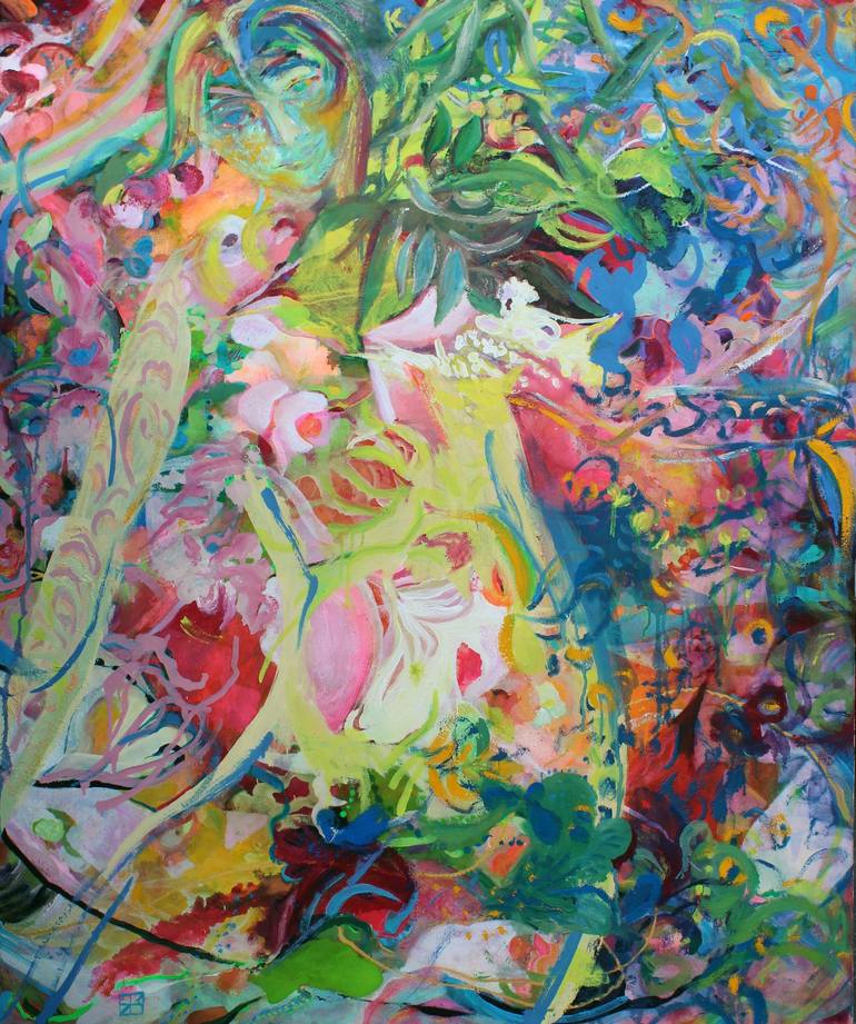 A musing on summer days in the woods, in nature, where all grows in perfect harmony. The forest is magically giving birth to its goddess - she is built from natural emanations of light, plant essences and threads of colour. She is a wise creature and is already giving back to the source of her creat...