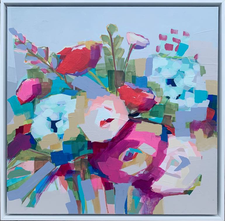 This is a modern floral inspired on a pixelated image of a floral arrangement.
