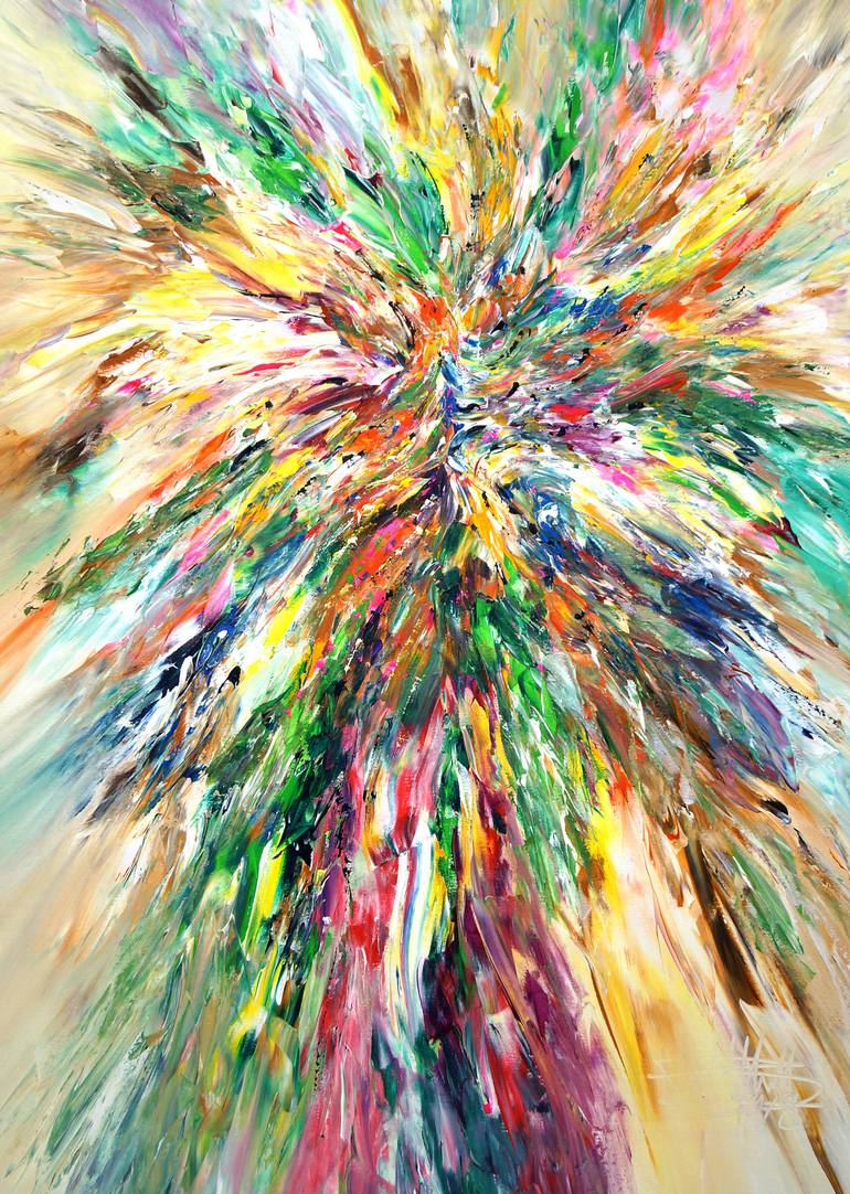 Large abstract painting. Original abstract expressionism art. 47.2" height x 33.5" width x 1.5" depth. (120 cm Höhe x 85 cm Breite x 3,8 cm Keilrahmenstärke) Original painting. Colourful, dynamic painting. Modern abstract artwork. It was painted with professional acrylic paint on canvas. Stretched...