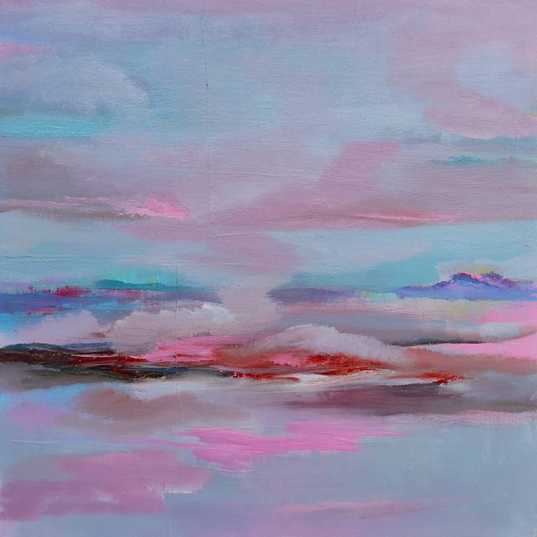 I spent 20 years in Colorado and I'm now living in Massachusetts, USA, both of which places have given me a lot of inspiration from nature. I love sunsets, and I'm often outside at dusk taking pictures. I've painted clouds for 10 years, to which I've added the air and the atmosphere. I'd like my canvases to be healthy for me and my buyers, for this reason, I use odor-free water mixable oils from Germany. When I'm painting, I try to feel the air around the canvas, which causes my art to be light, optimistic, meditational, and peaceful. I think that may be why people from a lot of countries around the world have purchased my art. I try to put all of the energies I feel from this amazing universe and transfer that love into my paintings. I'd like to emotionally connect with my viewers. I'd like to invite them into my experience, to let them feel as if they are there, within the picture, a part of the sunset or a part of that moment. I use all of my energies intuitively to create the mood I'm painting, like the drama, the quietness, and the sadness, and I'd like to feel viewers be free with what they see in my paintings. Thank you. Veta Barker.