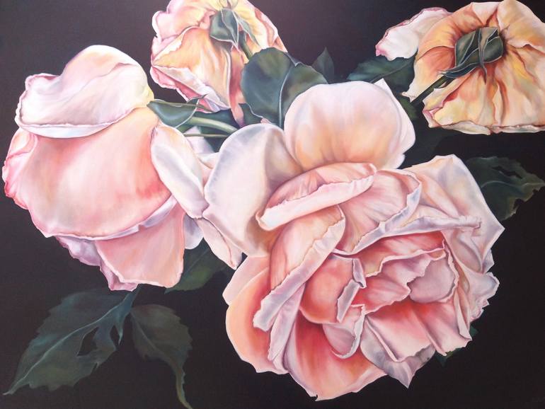 I love roses, so this the primary inspiration for this painting, I love the combination of roses in full bloom and roses wilting. The beautiful colours and shapes as their petals curl and change colours. I want the viewer to have a sense of looking at real roses that are in various stages of aging, ...