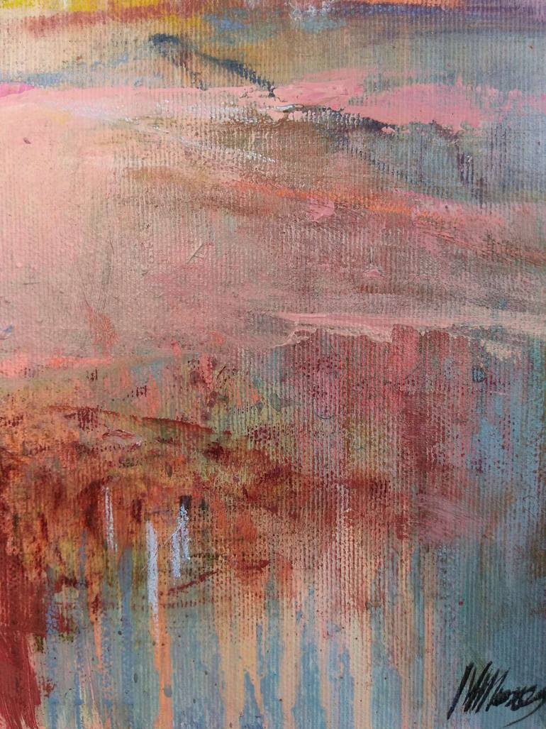 Mixed media using acrylics, watercolours, gold leaf and pastels on 3.5cm deep canvas This small abstract piece is all about capturing a sense of the hot, humid atmosphere as a short summer storm passes by, and the brief sense of cool relief that come with the downpour. This original artwork uses a...