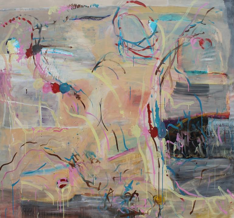 An abstract composition that kicks off my summer series. Expressive manner of performance, created with acrylic paints, I send in a tube, size 75х81inches