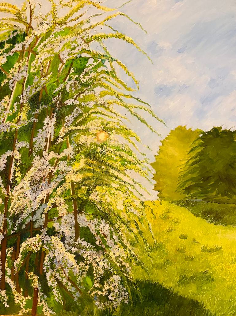 Lock down in 2020 when spring was just beginning, I spotted these blossoms during a long walk one day and I returned back a few times to view the sunset with these lovely blossoms. It was a joy painting these flowers in 2021, this time I knew the spot to walk back and capture the beautiful picture. ...