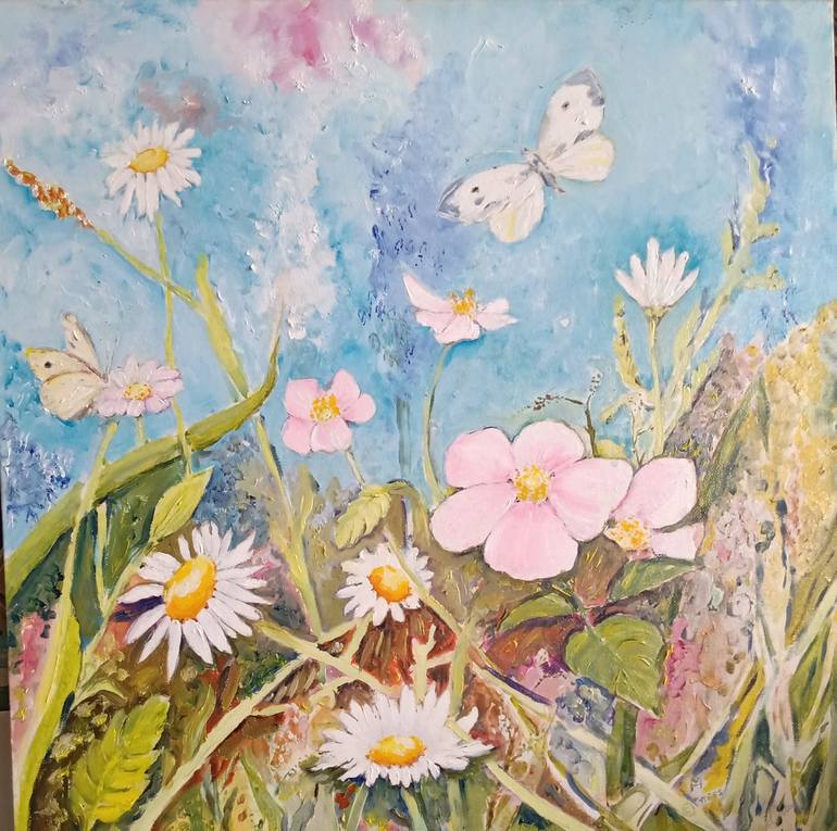 I just like to use the flowers in my garden, the beautiful summerday gave me inspiration. Hope you feel "that summerday" I used oil paint though i used some acrylic paint in the beginning and after that I took the oil paint.