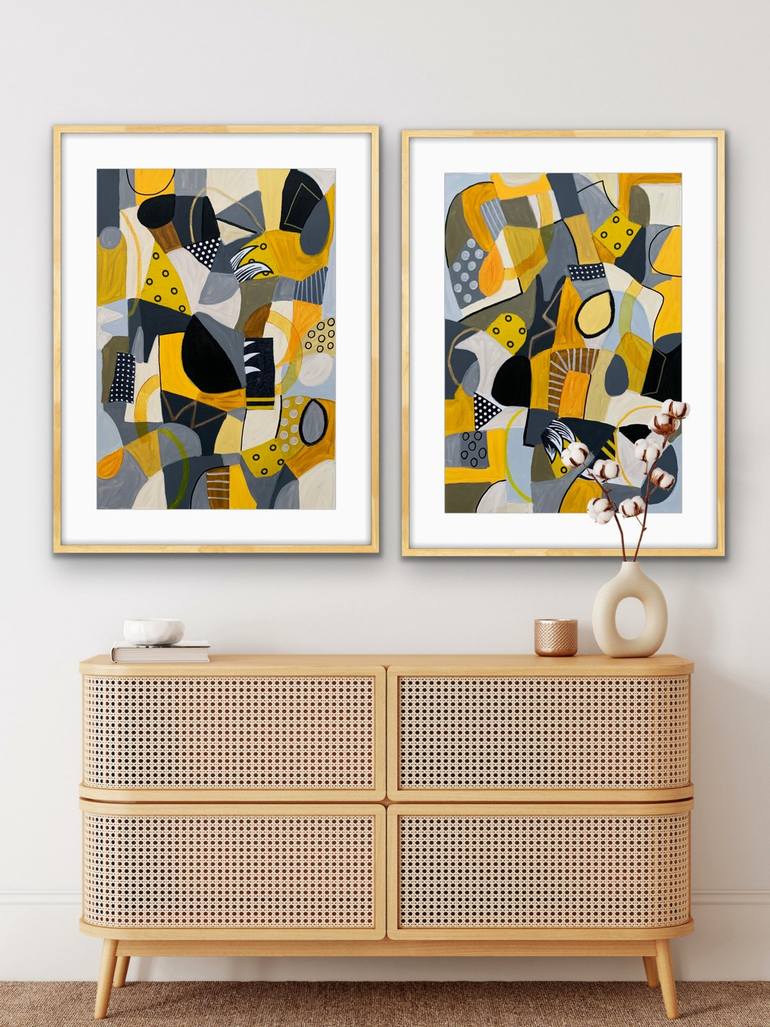A pair of vibrant abstracts. 70x50cms each panel. Painted on 400gsm professional paper. The paintings will need framing.
