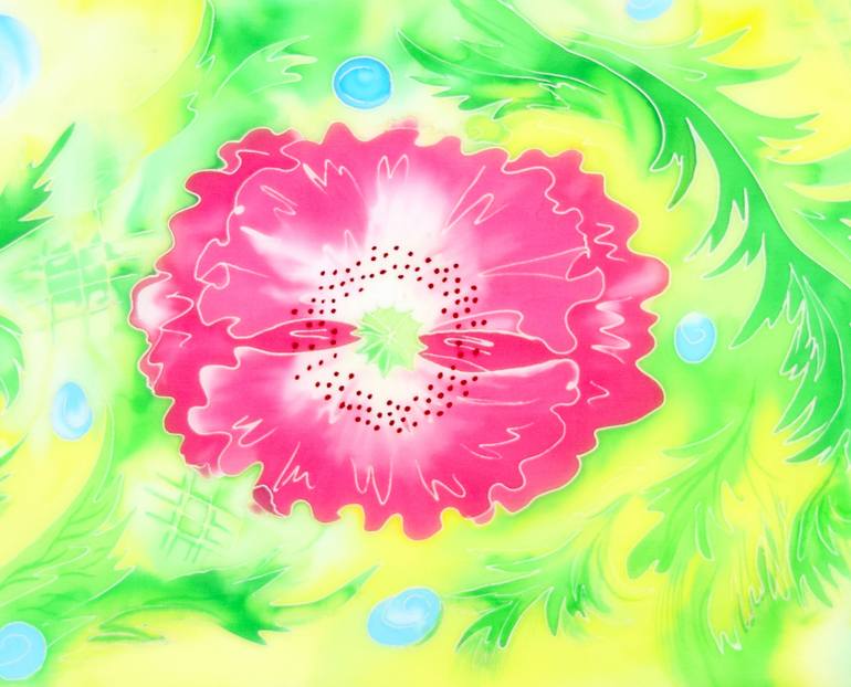 Italian chiffon. Paints acrylic for painting on silk "Batik" DEKOLA. Bright, sunny colouring as it connects you to the elements of summer. Red poppies, fresh summer greens and droplets of dew reflecting the blue sky. Design Tips: I want to offer you a few design tips. It will also suit clothes made...