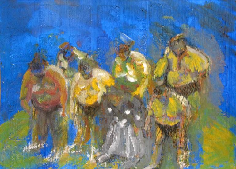 Japanese sumo wrestler bowing in the circle when they had against their rules. I painted the image from the newspaper photo, but in an abstract way.