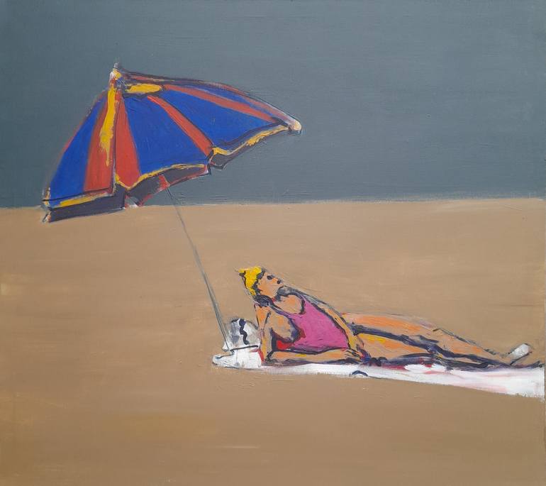 Obra de arte producida con acrilicos de primera calidad sobre tela sin marco Una mujer disfutando del sol,la arena