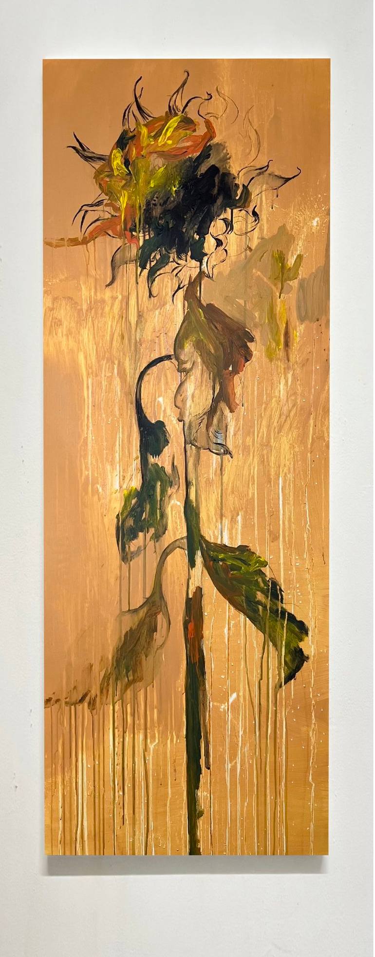 The painting conveys the feeling of an emotional explosion - the petals of sunflowers - yellow and orange, literally "break" the calmness of the yellow background. Their shapes look deformed, as if the flowers are experiencing a moment of maximum internal tension. Black lines and strokes add dynamic...