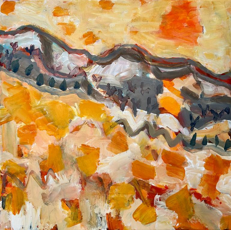 In this piece I’ve tried to capture the Provençal landscape bursting with warmth - a mosaic of golden fields and sunlit hills. In this semi-abstract vision, strokes of yellow and orange blend, evoking the glow of late afternoon light. Rolling mountains emerge in the distance, their shapes softened y...