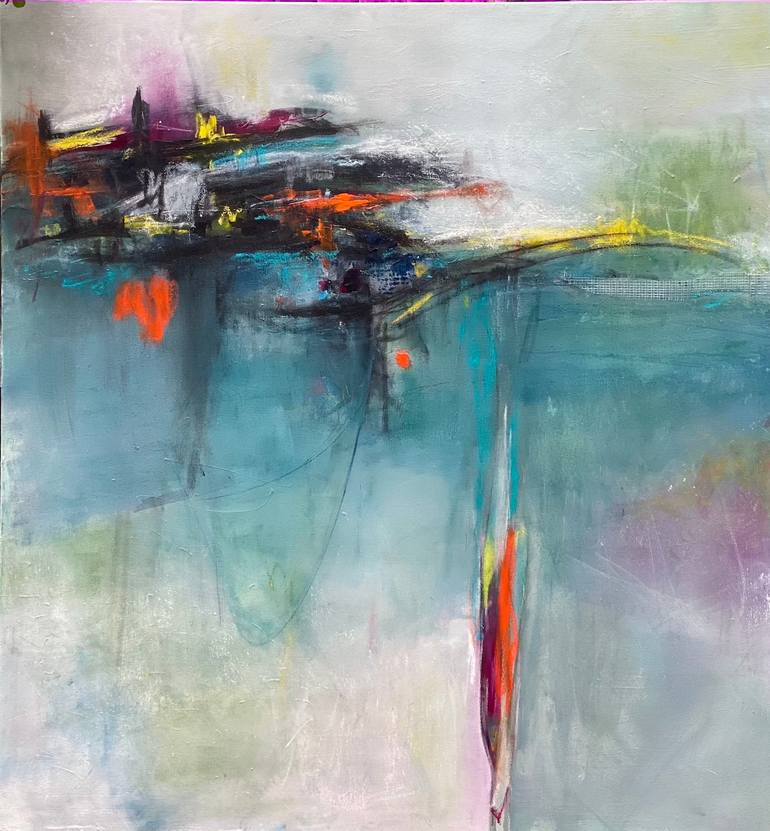 This piece was inspired by being on the water off Venice California. I frequently kayak in these waters to look inward. It is 36x36 on 1.5 deep stretched canvas. Medium is Acrylic, Ink and Charcoal. The intensity of feelings on the water are illuminated as is the depth of the water, showing a respe...