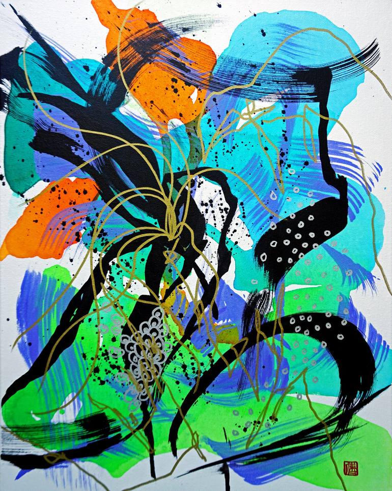 Acrylic, Markers on Stretched Canvas Protected with Professional Varnish Signed on the verso Unframed “Music in Ink” (墨樂) is a series of visual soundscapes interposed with the artist’s memories and sentiments which were then transformed into imaginary spaces. Music and poetry act as both backdro...