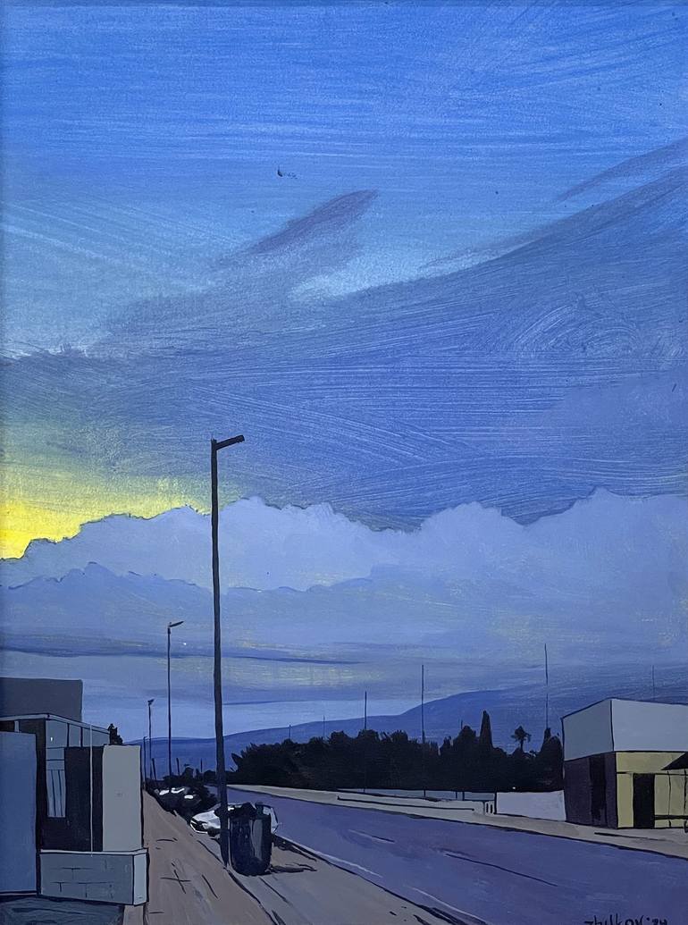 I created this scene in the summer of 2024. On my way to catch a train after a short local trip, I captured references of a sunset hidden behind dark, rainy clouds. The contrast between the stormy, gray clouds and the setting sun struck me. I'm sure you'll find something intriguing in this scene!