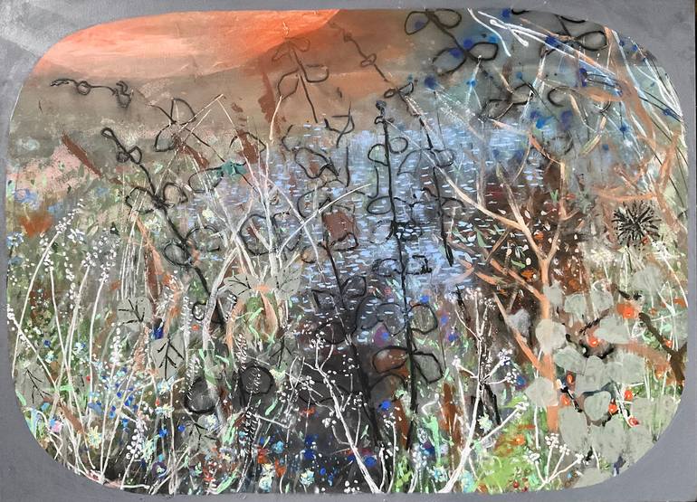 Beautiful soft, dreamy landscape. Inspired by the Song Dynasty period with a grey painted oval shaped border around the landscape and the beauty of the Cumbrian fells. This piece is very unique, varnished with a uv protective satin sheen finish. Ready to hang, with the paint dribbles showing on the ...