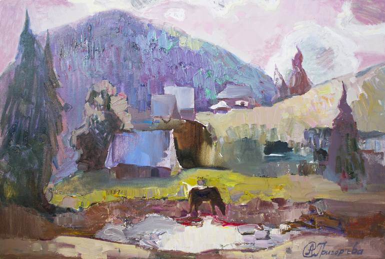 This picture I painted at sunset on the open-air in the was at warm evening. I was inspired by pink sky. Everything around was changing color, it was a fabulous day.