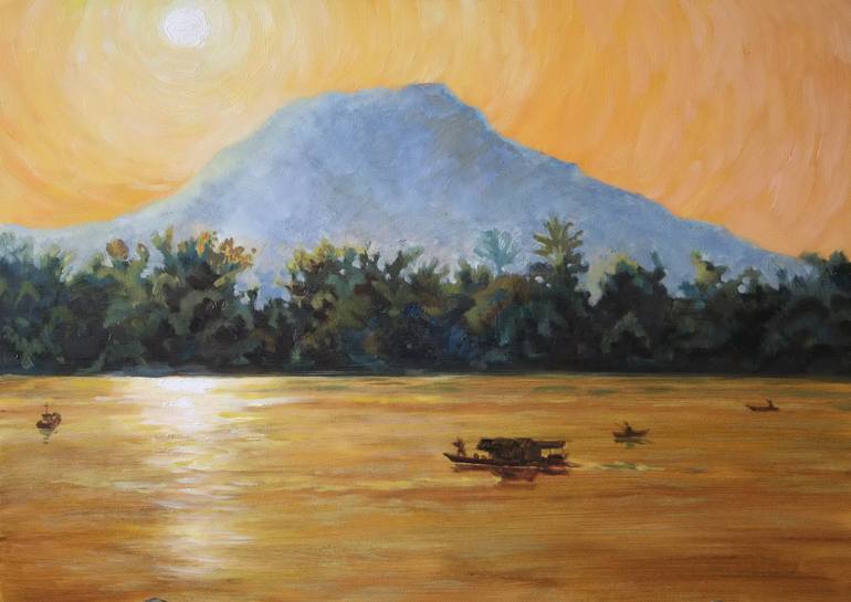 This beautifal sunset landscape was made by me in Malaysia in 2006. Bright combination of tropical sun and local nature gives an opportunity to nix warm colors. This original art would be excellent for decorating entryway halls, living room's walls or office. Product Information: Size: 50 * 70 cm (...