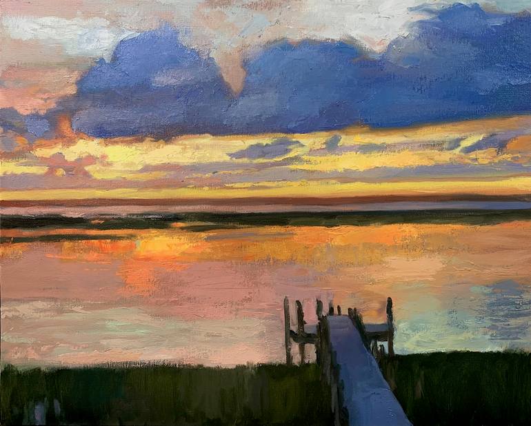 Summer on Chincoteague Island, Virginia. Facing west, I get to paint the sun setting at the end of each day. This is a favorite.
