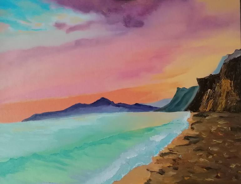 SUNSET ON TENERIFE DETAILS: * Painting name: "Sunset on Tenerife" * Artist: Sanja Jancic * Painting signed and dated with certificate of authenticity * Size: 50 x 45 cm * Technique, material: Professional oil paint on Canvas palete , UV protected varnish on canvas NOTE: SHIPMENT: * The painting...