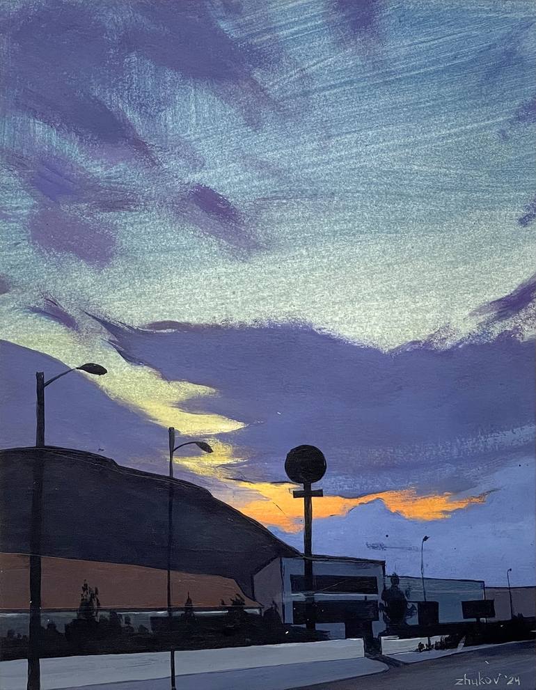 This painting is based on a sunset I photographed while visiting Cullera, a small town near Valencia. On the way back, I witnessed an incredible sunset. I gathered many references for future works, but decided to begin with this one.