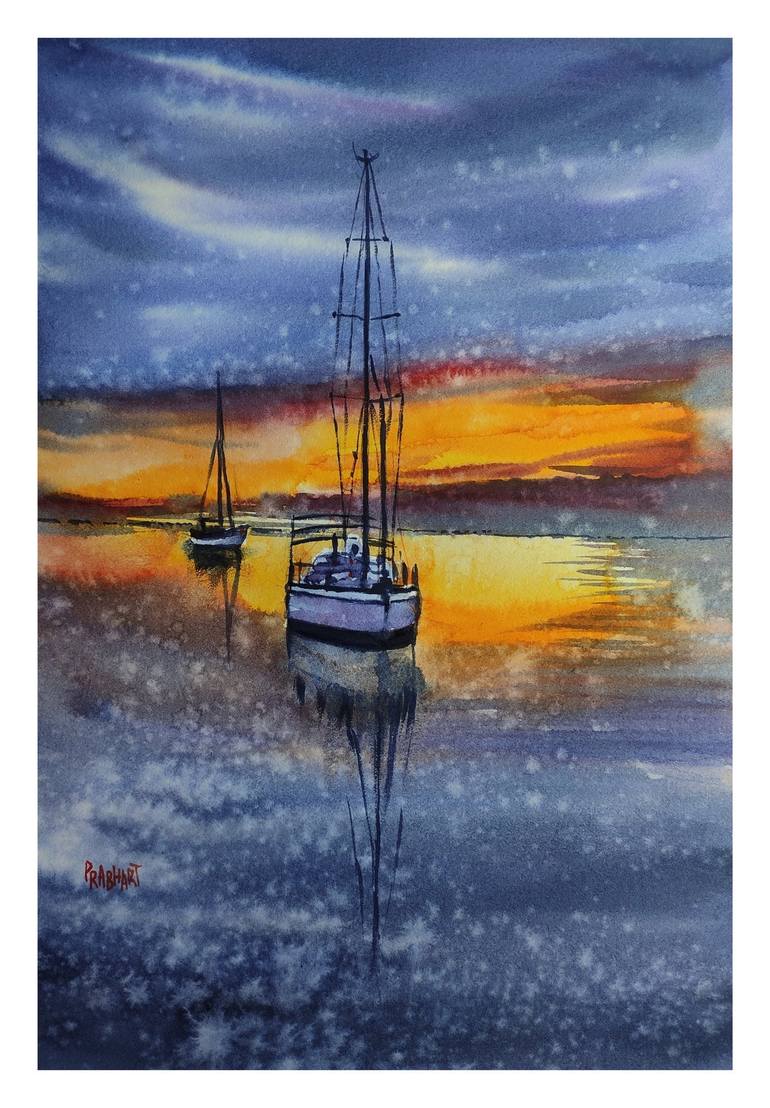 Sea scape watercolour on Arches hot pressed paper.300 gsm acidfree and long-lasting paper