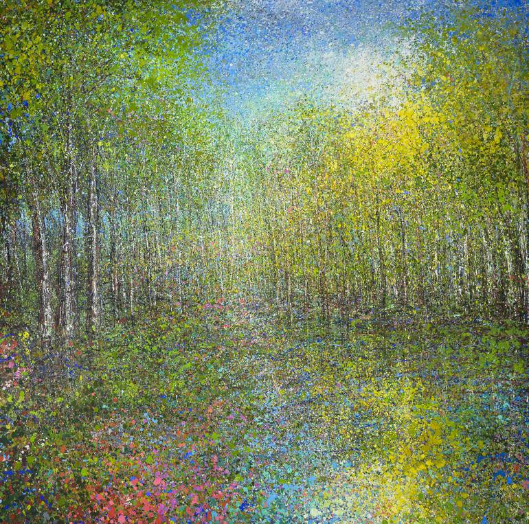 This large formatted painting was made in the summer of 2015 in my outdoor studio, as I exclusively painted it during the day. Whenever the sun went down the working session ended - day after day. The movement of the sun through the treetops played a huge role in the process. It is one of my larges...