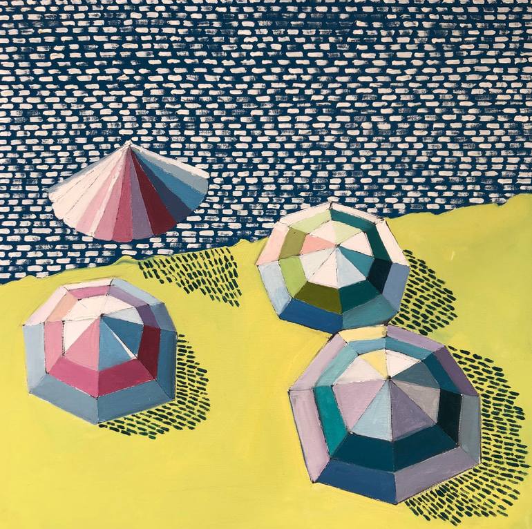 I've painted this artwork under the impression of summer experience of holiday and view of bright and colorful umbrellas on the beach, I used my own technique of applying high quality oil paint on canvas. I got influence by art works of Anges Martin.