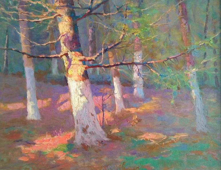 A beam of light filled the forest with vitality, and I was deeply attracted by this beautiful scene, so I used realistic techniques and Impressionist colors to create this work.
